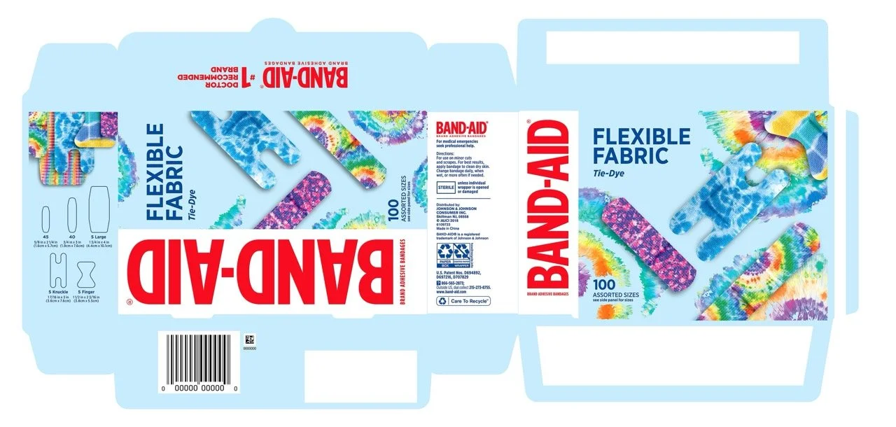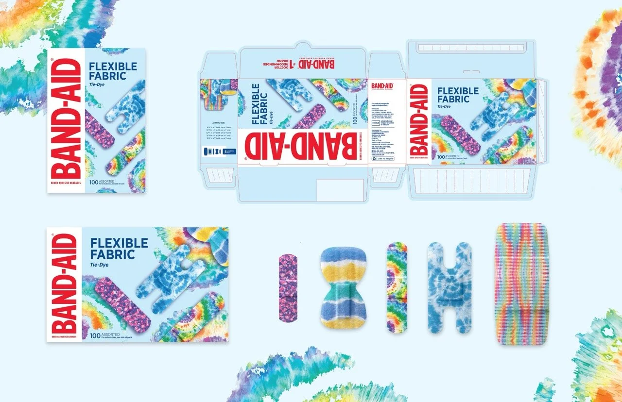 Delivered emotional value to treat wounds. Developed a brand and visual strategy to launch decorative unlicensed flexible fabric bandages to appeal to a larger audience of school-aged kids, teens, and adults as a +1 basket build for families.