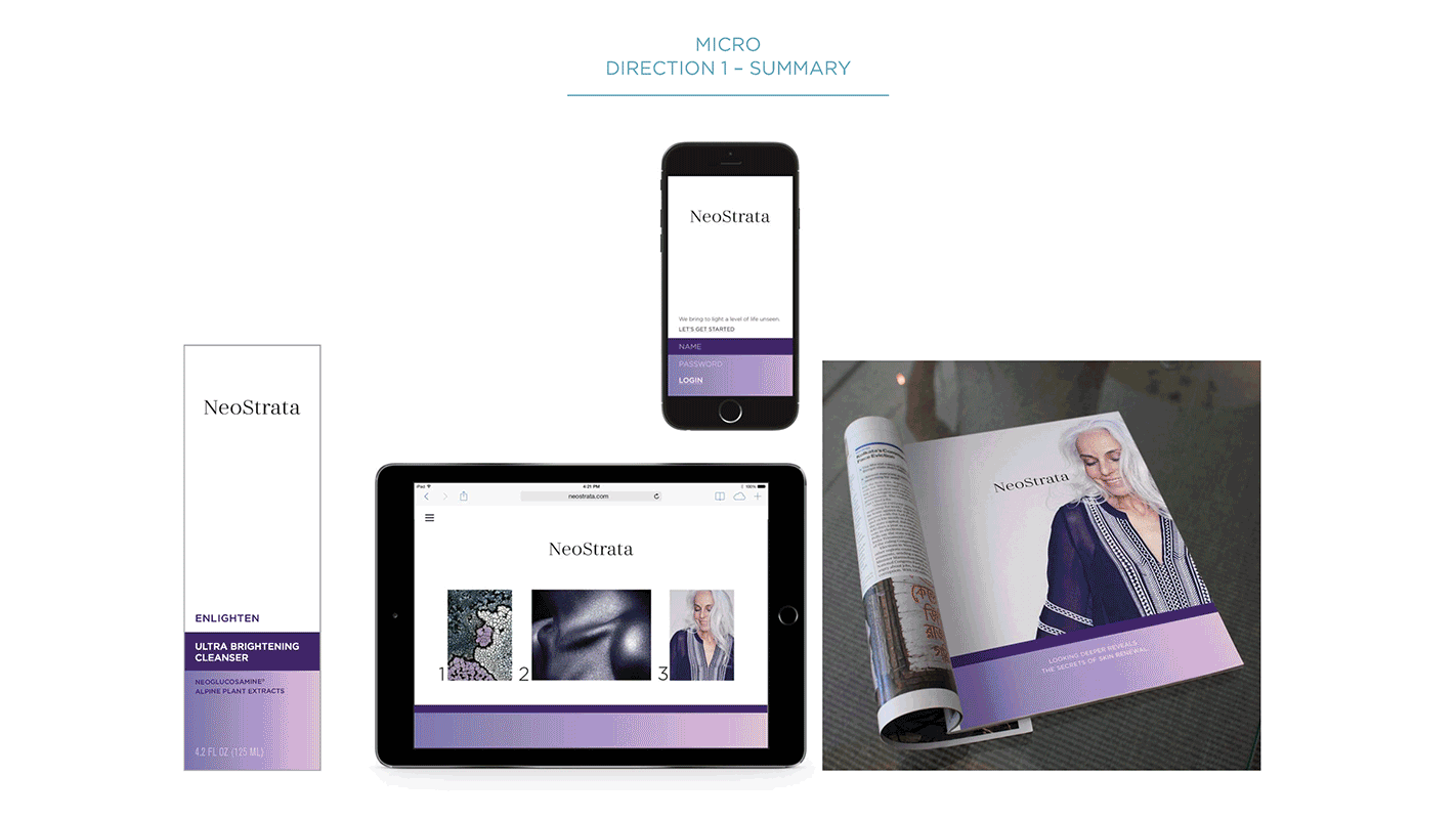 Design Objective: Build beyond the category conventions to create a more evocative, emotional, and engaging expression for Neostrata. Adding new dimensions to enrich the brand with a personality that differentiates.